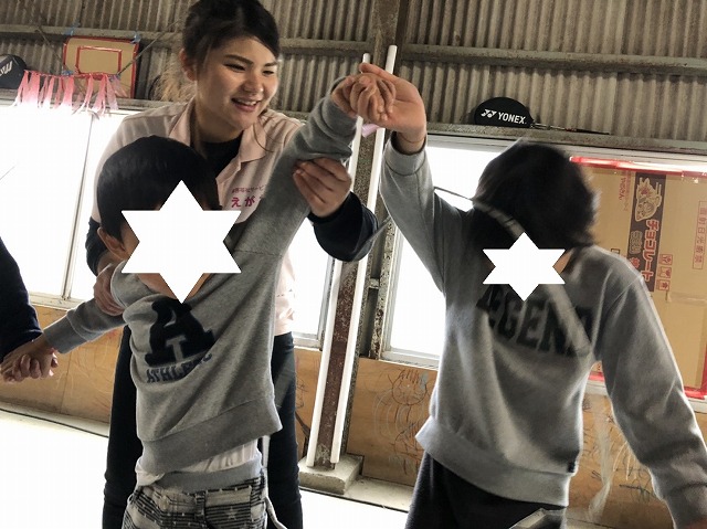 次のゲームは、”連結輪くぐり競争”!