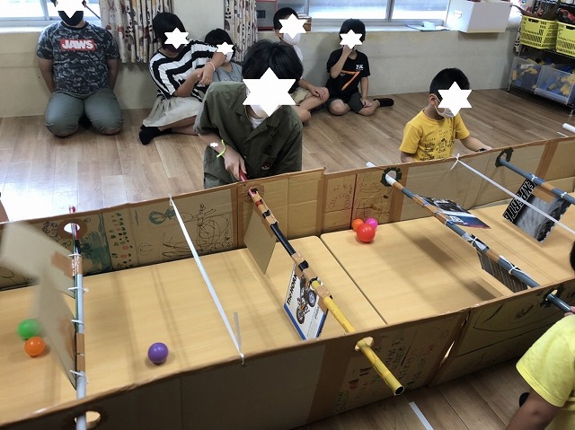 樋から転がってくる水風船を、ザルでキャッチしよう(^O^)/!