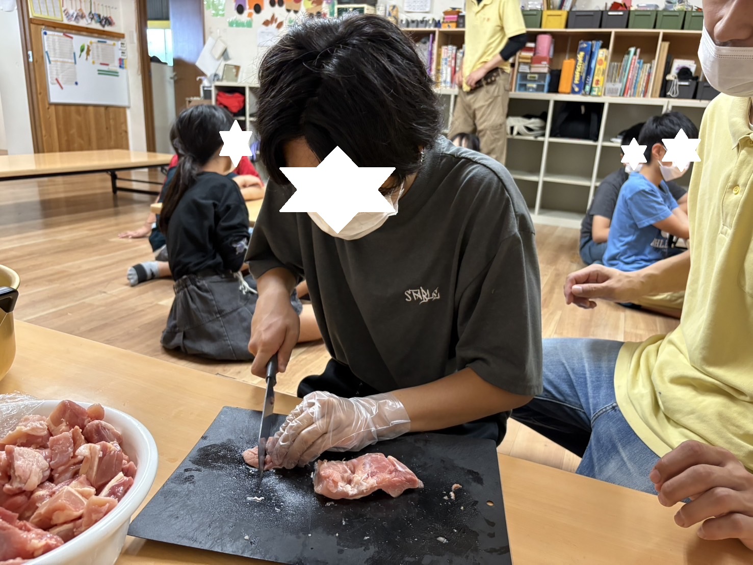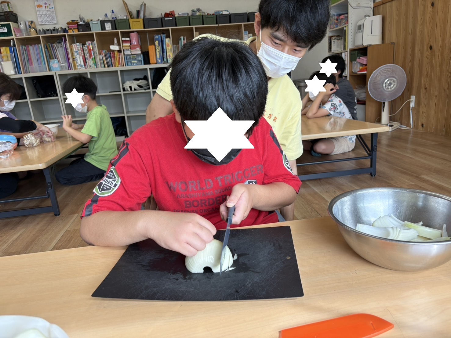 柔らかいから野菜よりも切りにくいよ、気を付けてね。