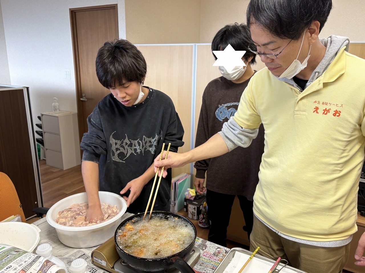 大量のお肉を、どんどん揚げていきます。